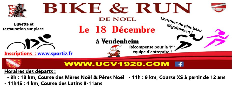 Après une première édition 2015 du « Bike&Run de Noël » forte en succès, l’UC Vendenheim remet ça ! Participez à cet