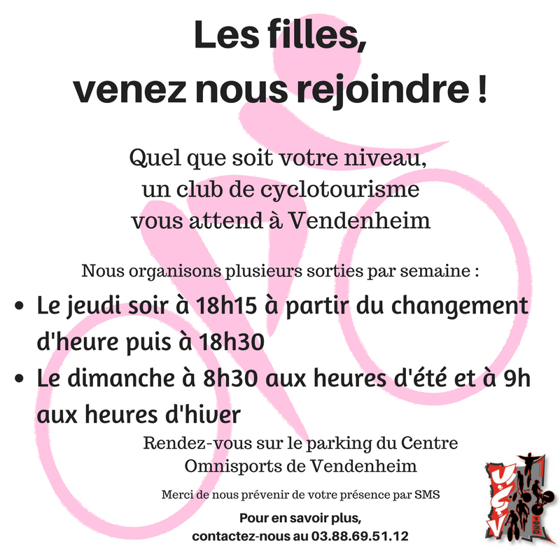 L’UC Vendenheim aime les cyclistes féminines ! Rendez-vous le jeudi soir et le dimanche matin pour des sorties de groupe